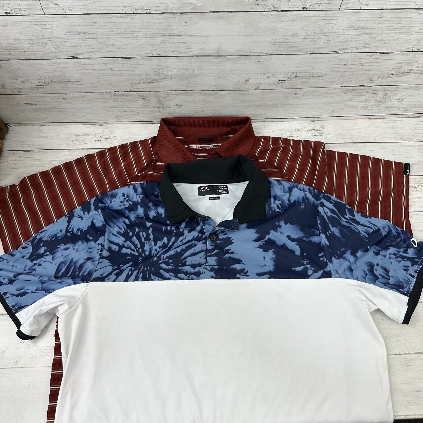 Lot of 2 Oakley Polyester Polo Golf Shirts Men's Large Short Sleeve